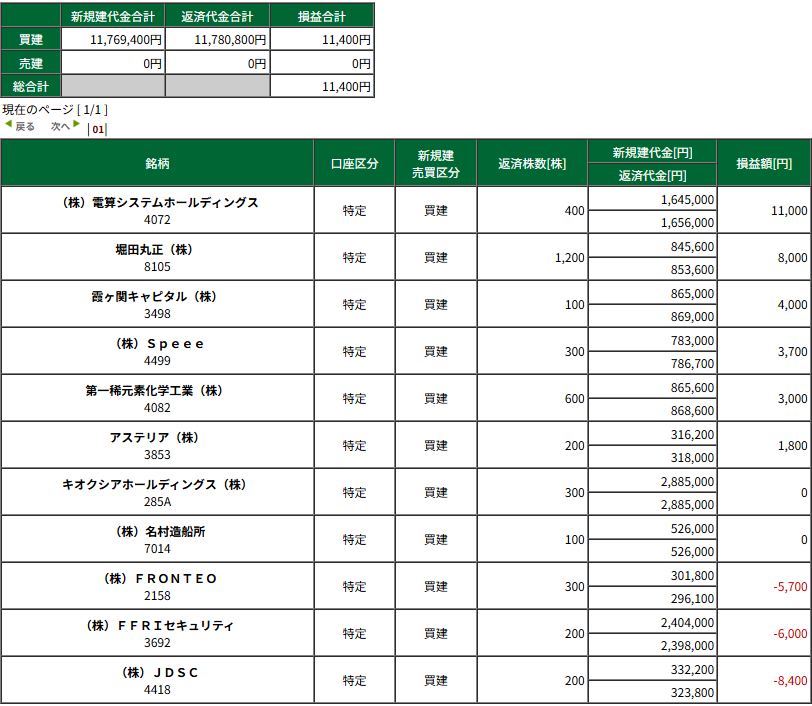 HOME > 日々の記録 > 日々の記録 諭吉やっと男 -10/27(月) デイトレ結果- 投稿日:2025年10月27日 15:39 もうちょっとやりようがあったんじゃないかと思うが、結果はやっとこさ諭吉。 グロースもうちょいやる気出してくれんかねー 本日の収支:+11,400円 今月の収支:+275,176円(税引後) 広告 広告 ブログランキング参加中です。 応援よろしくお願いします。 -日々の記録