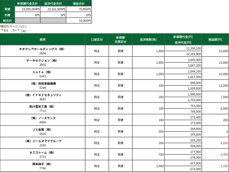 HOME > 日々の記録 > 日々の記録 ピンピン男 -11/27(木) デイトレ結果- 投稿日:2025年11月27日 16:20 久々に手数そこそこピンピンやってそれなりに勝てた。 後場は腐ってるので前場だけ。 本日の収支:+76,900円 今月の収支:+266,754円(税引後) 広告 広告 ブログランキング参加中です。 応援よろしくお願いします。 -日々の記録