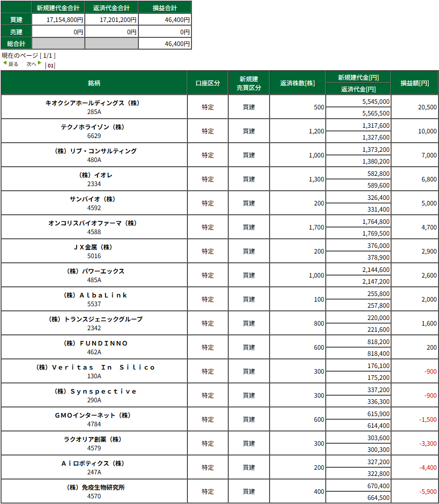 HOME > 日々の記録 > 日々の記録 締め男 -12/26(金) デイトレ結果- 投稿日:2025年12月26日 16:46 29日30日は予定ありなので、おそらく年内最後のトレード。 今日は監視銘柄色々なところがガチャガチャ動いていて、久々にデイトレしたなという感じがした。 これよこれ、求めているのは。 数年前は毎日こんな感じだったから、そりゃやりやすかった。 2026年はグロースの年となりますように。 本年もお世話になりました。 本日の収支:+46,400円 今月の収支:+308,301円(税引後) 広告 広告 ブログランキング参加中です。 応援よろしくお願いします。 -日々の記録