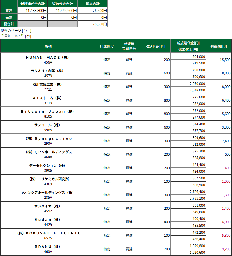 HOME > 日々の記録 > 日々の記録 どうにか男 -12/3(水) デイトレ結果- 投稿日:2025年12月3日 16:56 どうにか勝ったけど明らかに相場は腐ってる。 グロースはこのまま下げ続けると来年前半には株価なくなる。 本日の収支:+26,600円 今月の収支:-14,742円(税引後) 広告 広告 ブログランキング参加中です。 応援よろしくお願いします。 -日々の記録