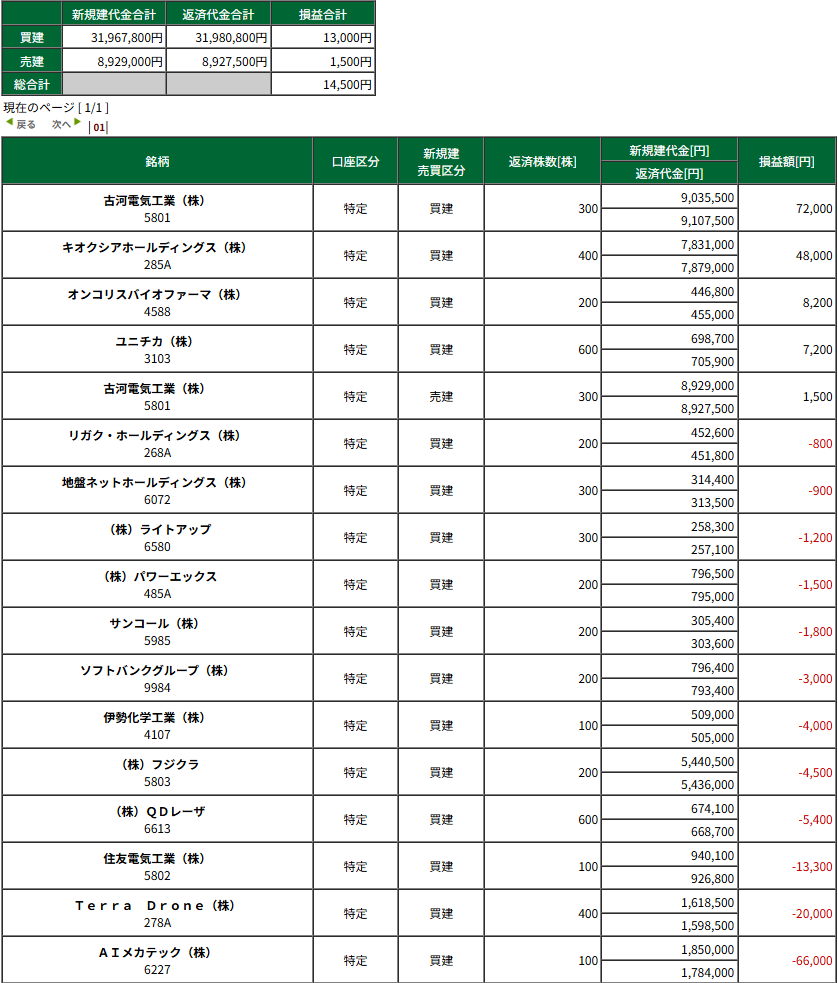 HOME > 日々の記録 > 日々の記録 辛勝 -3/27(金) デイトレ結果- 投稿日:2026年3月27日 15:06 大幅GDでやりやすい展開くるかと思いきや、寄り凸チンパン負け。 最近難易度上がってきちゃってる感じするなーこれ。 前場なすすべなく30kくらいやられて、後場の上げに少しだけのっかれてどうにかちょい勝ち終了。 その上げ前場にやってほしいんよなー。 本日の収支:+14,500円 今月の収支:+1,109,857円(税引後) 広告 広告 ブログランキング参加中です。 応援よろしくお願いします。 -日々の記録