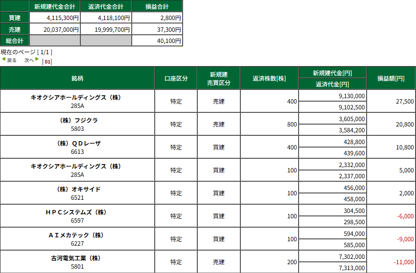 本日の収支:+40,100円