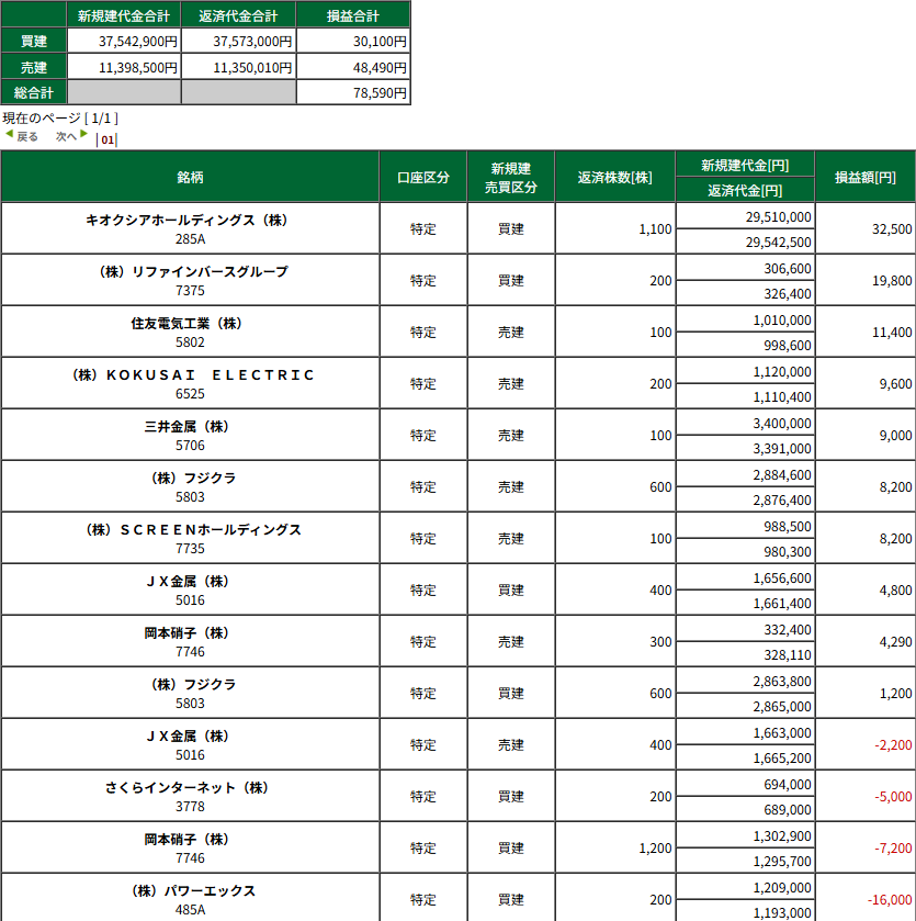 一個だけ明かすと7375リファインを前日引け買い本日寄り売り。