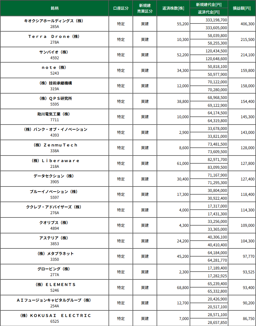 銘柄別損益