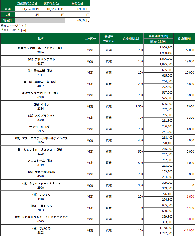 HOME > 日々の記録 > 日々の記録 消化不良男 -11/21(金) デイトレ結果- 投稿日:2025年11月21日 17:11 全台GDでボーナス相場かと思いきや、何とも微妙な結果。 寄りはもうちょいやりようがあった気がするだけに少しモヤモヤが残る。 本日の収支:+69,500円 今月の収支:+199,898円(税引後) 広告 広告 ブログランキング参加中です。 応援よろしくお願いします。 -日々の記録