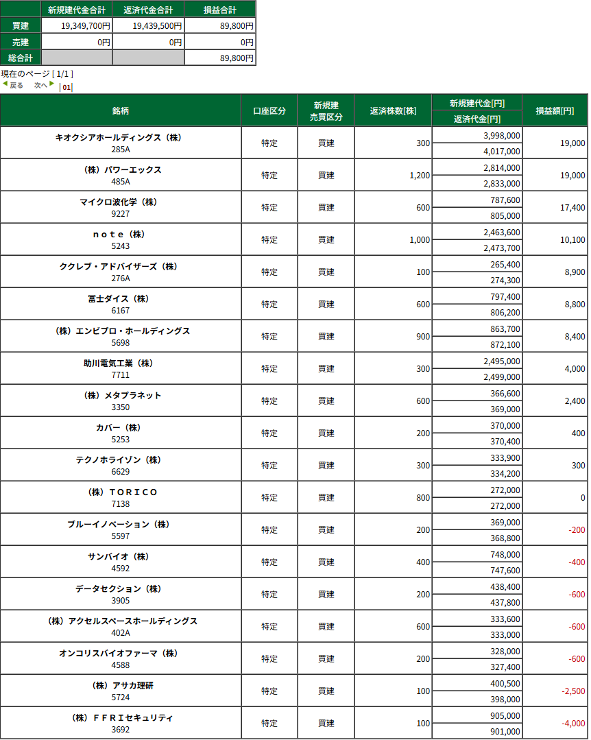 HOME > 日々の記録 > 日々の記録 つんでも相場 -1/15(木) デイトレ結果- 投稿日:2026年1月15日 15:32 まじでつんでもない相場。 本日の収支:+89,800円 今月の収支:+133,791円(税引後) 広告 広告 ブログランキング参加中です。 応援よろしくお願いします。 -日々の記録