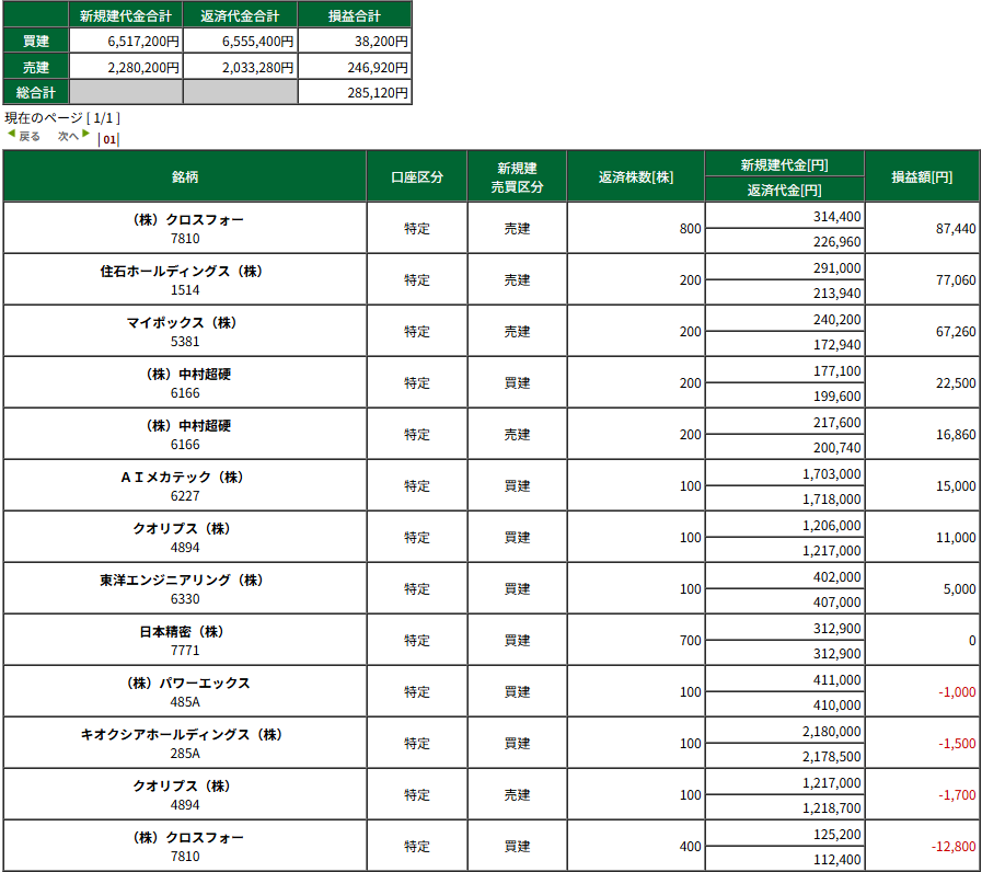 本日の収支:+285,120円