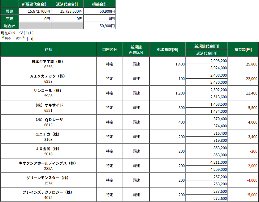 HOME > 日々の記録 > 日々の記録 ひよる -3/11(水) デイトレ結果- 投稿日:2026年3月11日 15:33 前場は馬鹿になって買っときゃいい相場だったけど、ひよって馬鹿にはなれず。 後場は結構下げてたけど知らん。もちのろんで寝てる( ˘ω˘)スヤァ 本日の収支:+50,900円 今月の収支:+573,334円(税引後) 広告 広告 ブログランキング参加中です。 応援よろしくお願いします。 -日々の記録