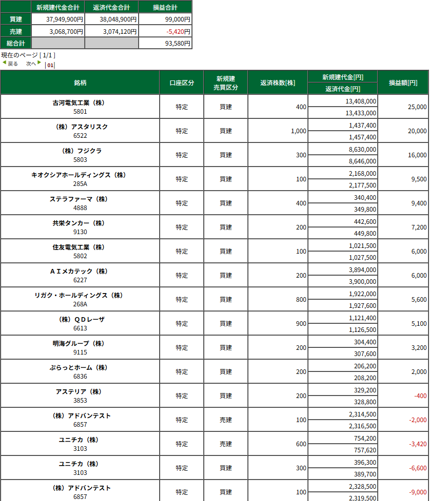 HOME > 日々の記録 > 日々の記録 グロース最弱 -3/26(木) デイトレ結果- 投稿日:2026年3月26日 15:45 日経も大概だがグロースはそれに輪をかけて酷かった。 そんな中では取れた方だが、それでも反省点は多々ある。 特にユニチカこのチャートで最初売りで入ってカットして、ドテン気味に買ってカットして、ドテン気味に売ってカットしてと自分の売りのセンスのなさを痛感。売りで良さそうと思ってもノイズですぐに狩られる… 本日の収支:+93,580円 今月の収支:+1,098,302円(税引後) 広告 広告 ブログランキング参加中です。 応援よろしくお願いします。 -日々の記録