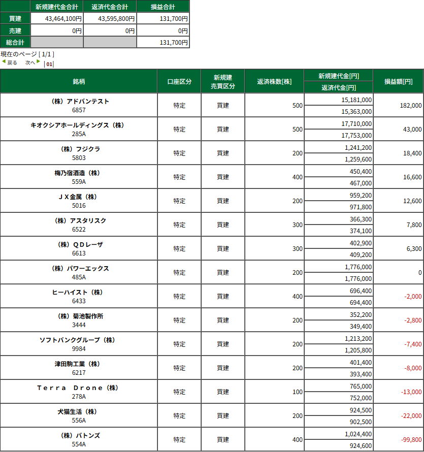前場は結局-50kくらいでフィニッシュだったが、先週末昼に謎の買いが入ったアドバン、こういう謎ムーブは続くパターンがたまにあると前引けで一枚買ったら本当に来て逆転満塁ホームラン。ナニコレー