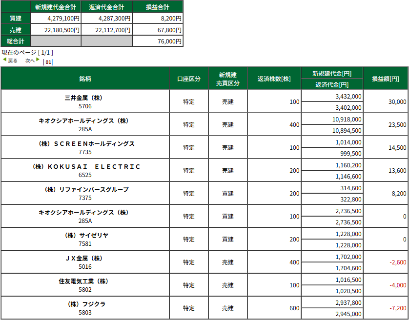 HOME > 日々の記録 > 日々の記録 手数少 -4/9(木) デイトレ結果- 投稿日:2026年4月9日 15:48 方向感掴みづらく手数少なめで、寄り売りの利益がメイン。 古河はここまでの価格になっちゃうともうそうそう手が出せない。 本日の収支:+76,000円 今月の収支:+294,733円(税引後) 広告 広告 ブログランキング参加中です。 応援よろしくお願いします。 -日々の記録